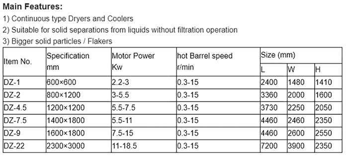 Description: The drum is equipped with an internal spraying cooling system to maintain optimal operating temperatures.