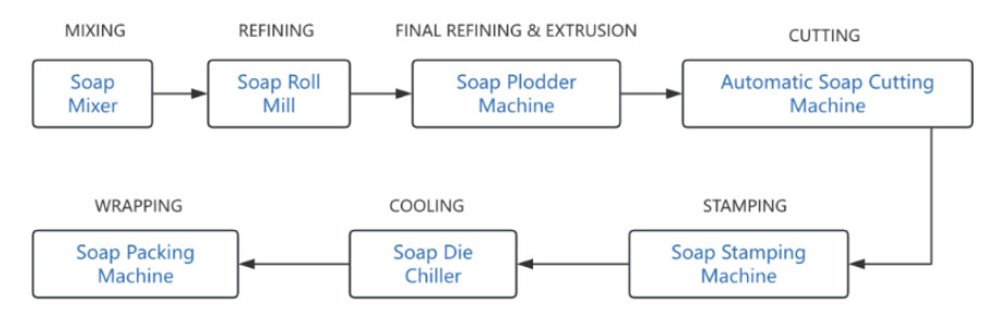Soap Packing Machine : This machine is used to package finished soaps at the end of production. It can create various types of packaging using a range of materials.