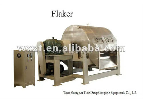 The parts of the Drum Flaker in contact with soap material are 304 stainless steel, and the machine frame support is carbon steel hot spray galvanized.